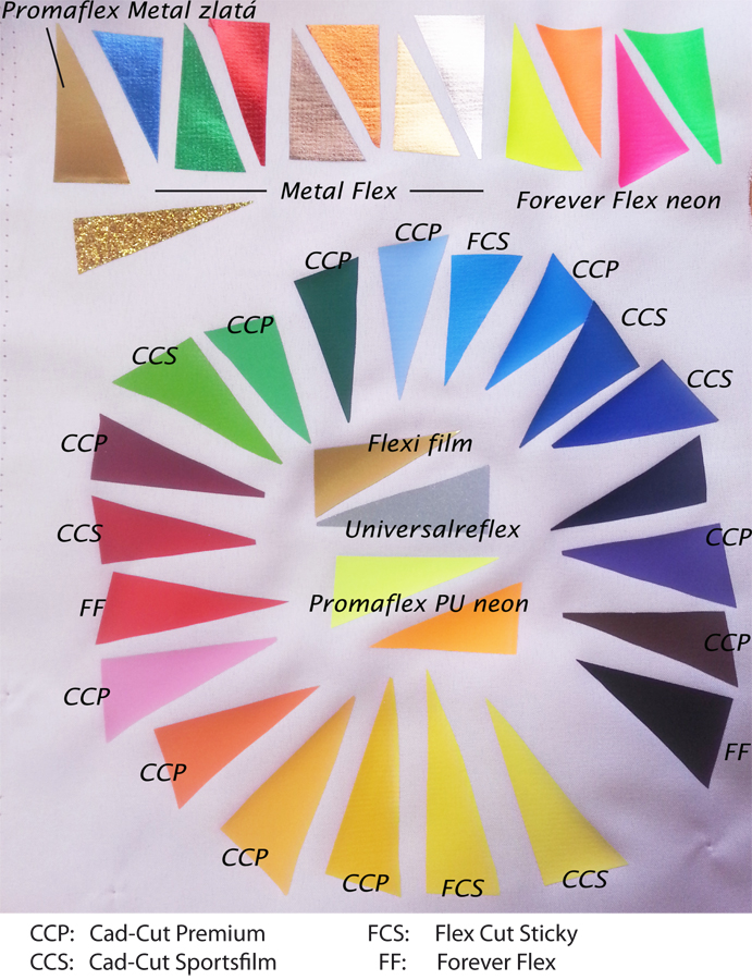 Ukázka nažehlovacích fólií na textilu: